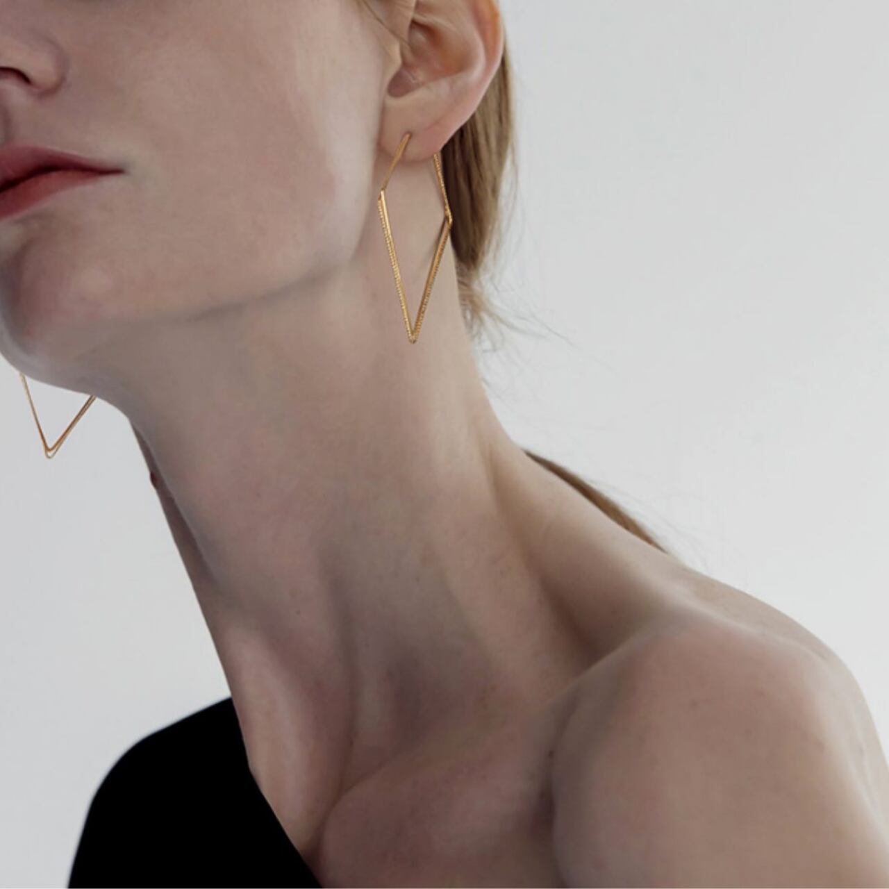 クールでモダンなデザインのひし形ピアス。シンプルながらも個性的な形状が、おしゃれなアクセントを演出します。普段使いはもちろん、特別なシーンにもぴったりです。