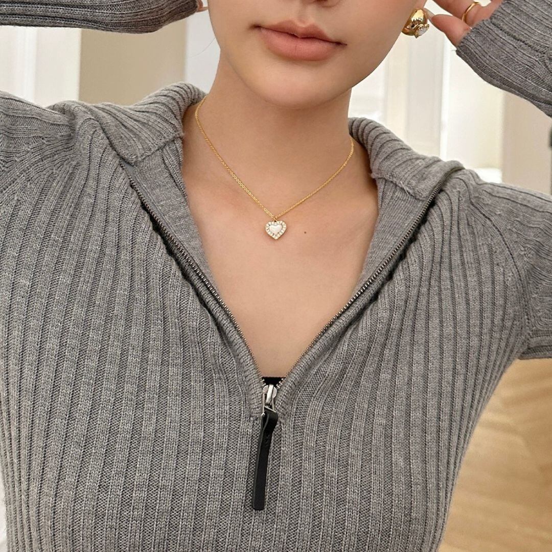 キラキラ輝くチェーンに、可愛らしいハートモチーフが煌めくデザインです。