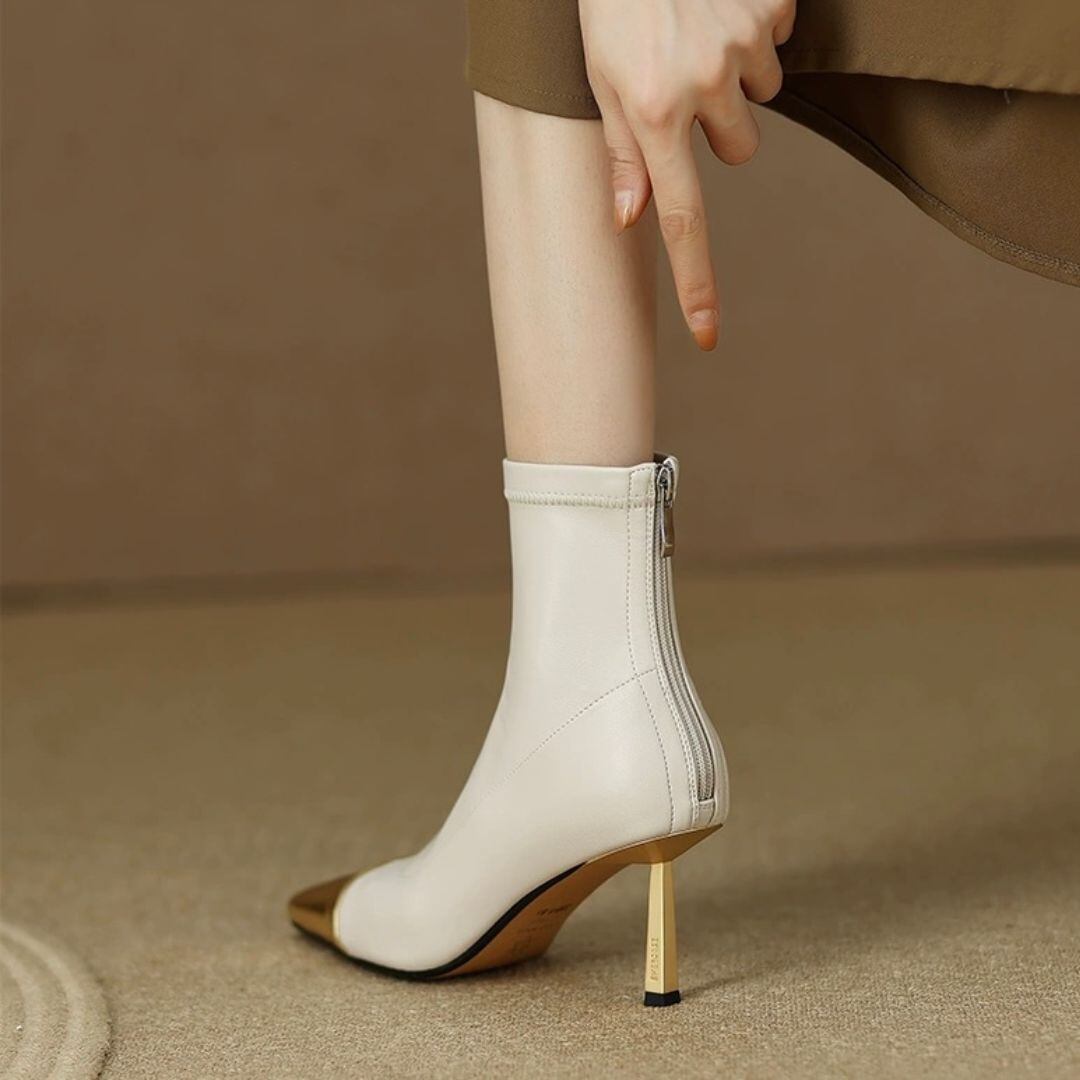 甘辛ミックスのメタルデザインがおしゃれなハイヒールショートブーツ。 シンプルなデザインなので、様々なコーディネートに合わせやすく、足元から高級感を演出します。 【サイズ】 ※インポート品になりますので、日本と比べてサイズが小さい可能性がございます。 こちらのサイズ表でご確認いただき、ご購入をお願いいたします。 35インチ(22.5cm) 36インチ(23.0cm) 37インチ(23.5cm) 38インチ(24.0cm) 39インチ(24.5cm) ヒールの高さ7.5cm ※採寸方法により1~3cmほどの誤差が出る場合がございます。 【カラー】 ホワイト/アプリコット 【素材】 レザー ◼️お届けについて ・こちらの商品は海外より直接発送となる為、 ご入金から10日~4週間前後で発送となります。 ・配送日時の指定は出来ませんので、ご了承ください。 ◼️注意事項 ・タイミングによっては 商品在庫切れにより ご注文をキャンセルさせていただく恐れもございますので、予めご了承ください ませ。 ・こちらは輸入品となります。日本製とは検品基準が異なる為、 新品未使用品でもごくわずかな汚れや傷がある場合もございます。 ・商品の色味は、お手持ちのスマートフォンの画面によって実物と若干異なる場合 がございます。 ・イメージ違いやサイズ交換等、お客さまご都合による交換、返品は対応出来かね ます。 ——————————————————————— ご購入前に必ずこちらをお読みください https://store.elantokyo.net/about ———————————————————————