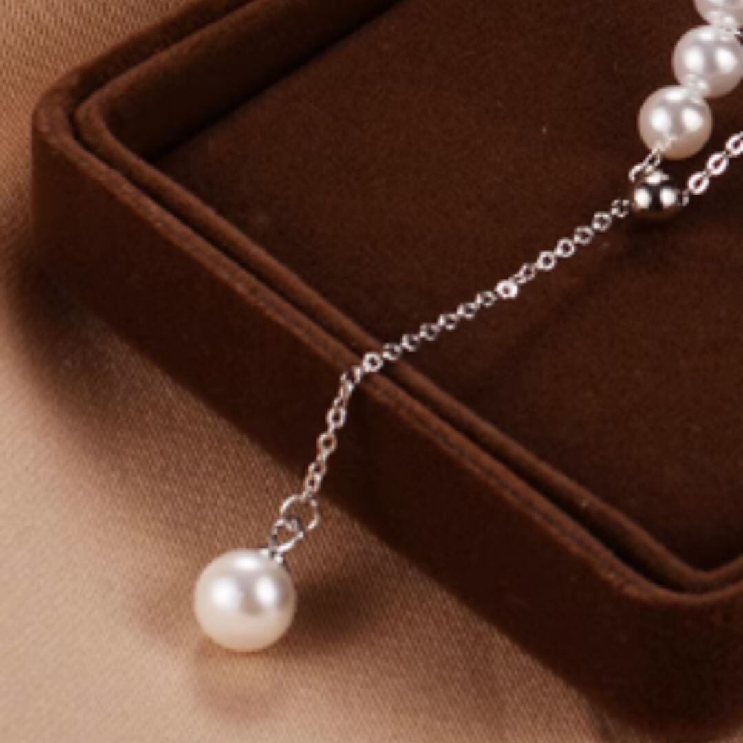 洗練された輝きを放つパールシルバーチェーンネックレス。