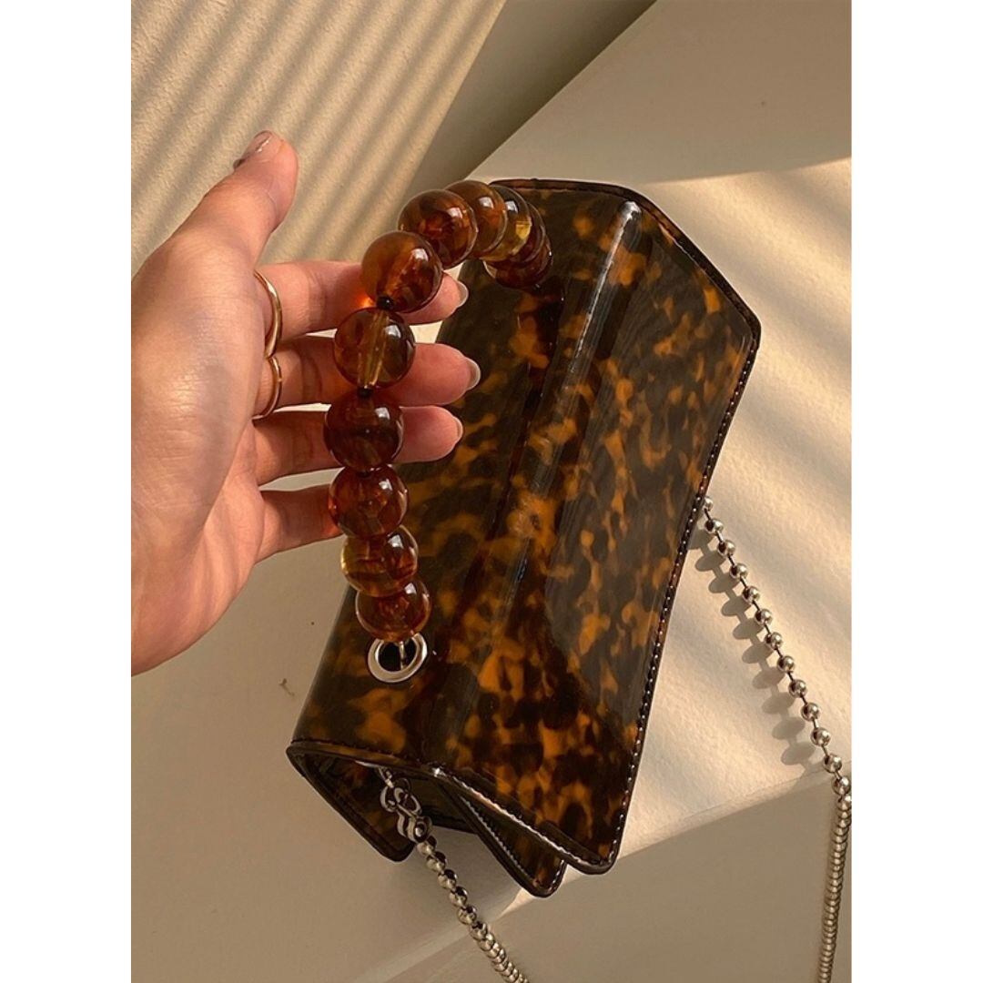上品なデザインと手軽なサイズ感が魅力的なビーズチェーンショルダーバッグ。