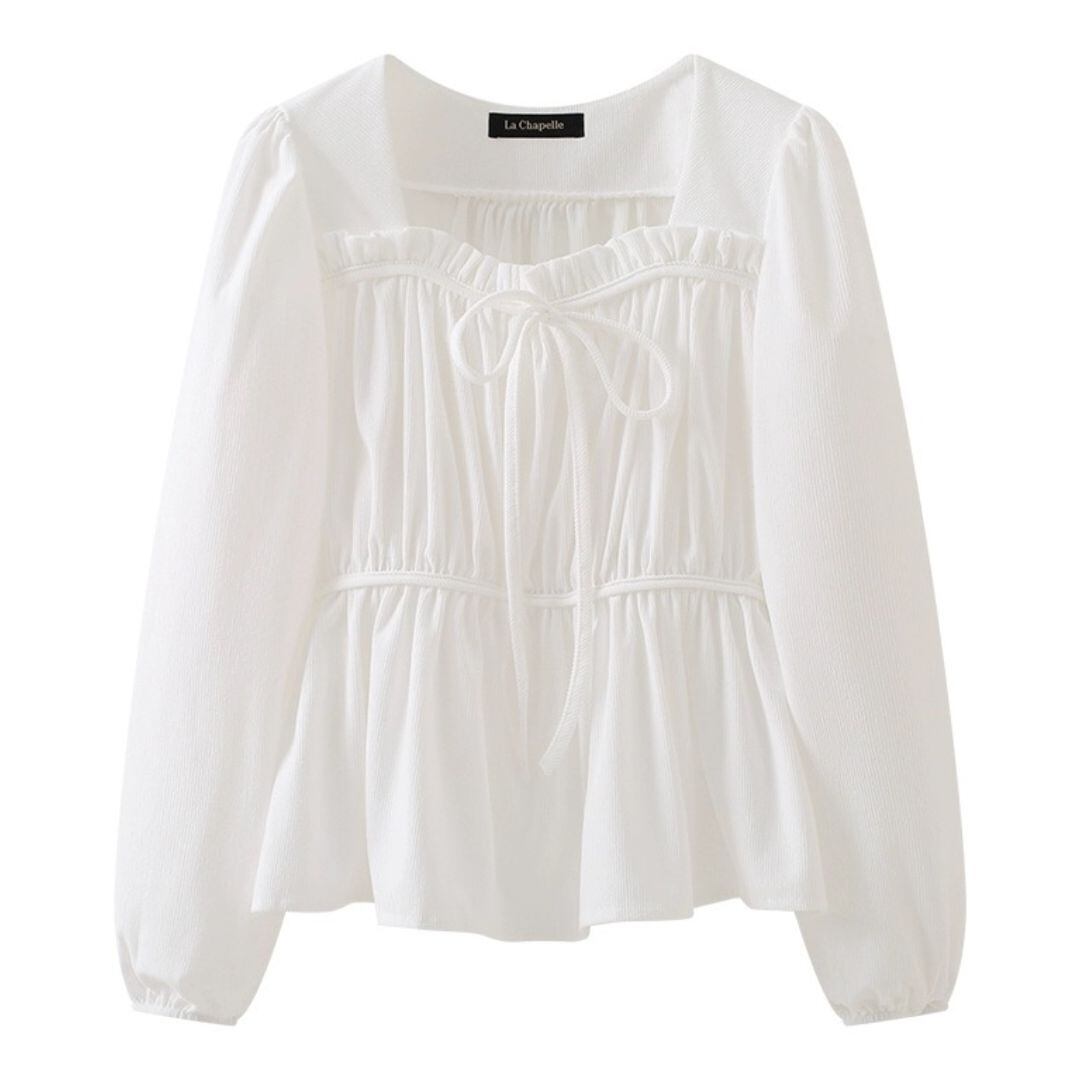 デイリーコーデに華やかさをプラスするレースアップ長袖シャツ。