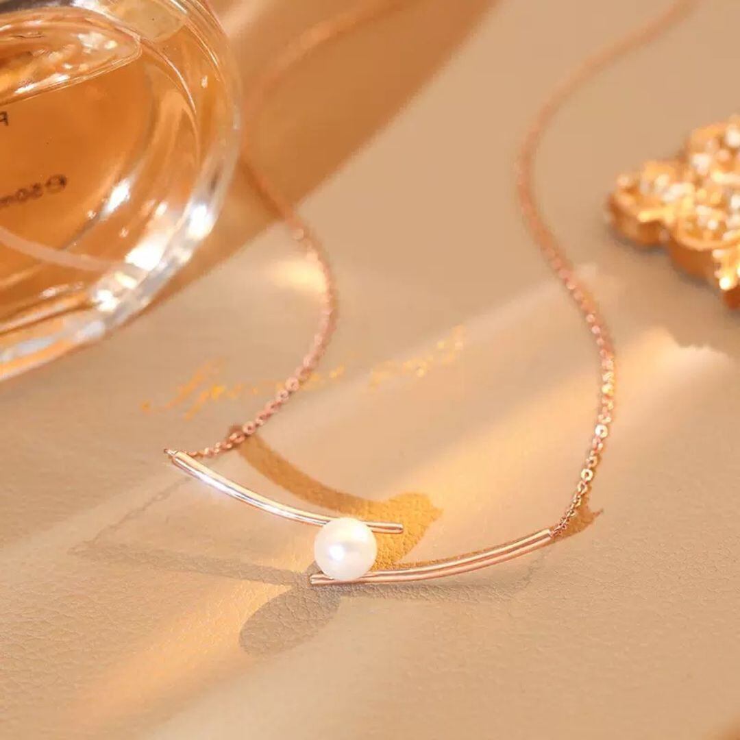 ネックラインを引き立てるシンプルなデザインで、どんなスタイルにもマッチするパールチェーンネックレス。