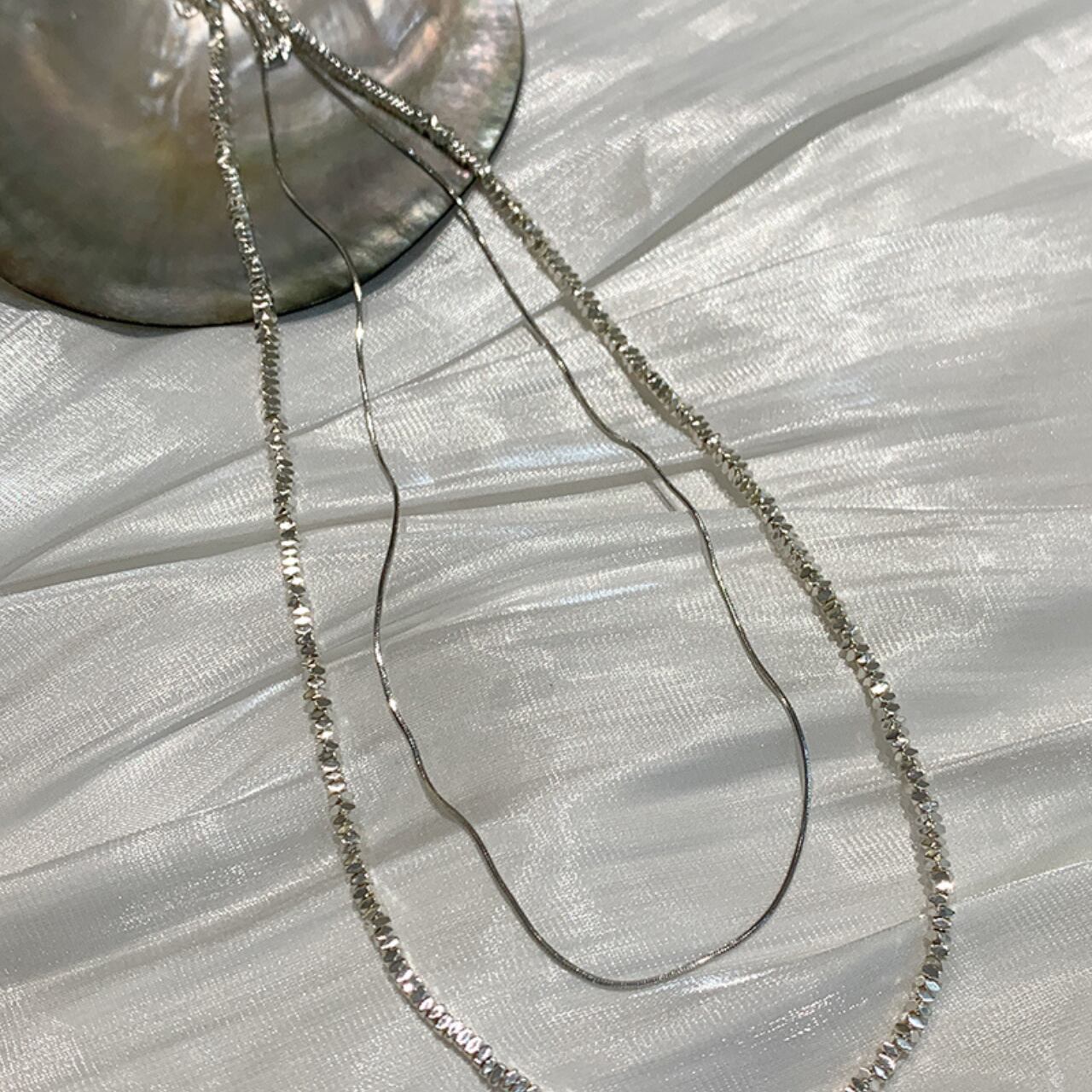 シンプルで上品なシルバーネックレス。洗練されたデザインが、どんな装いにもマッチします。