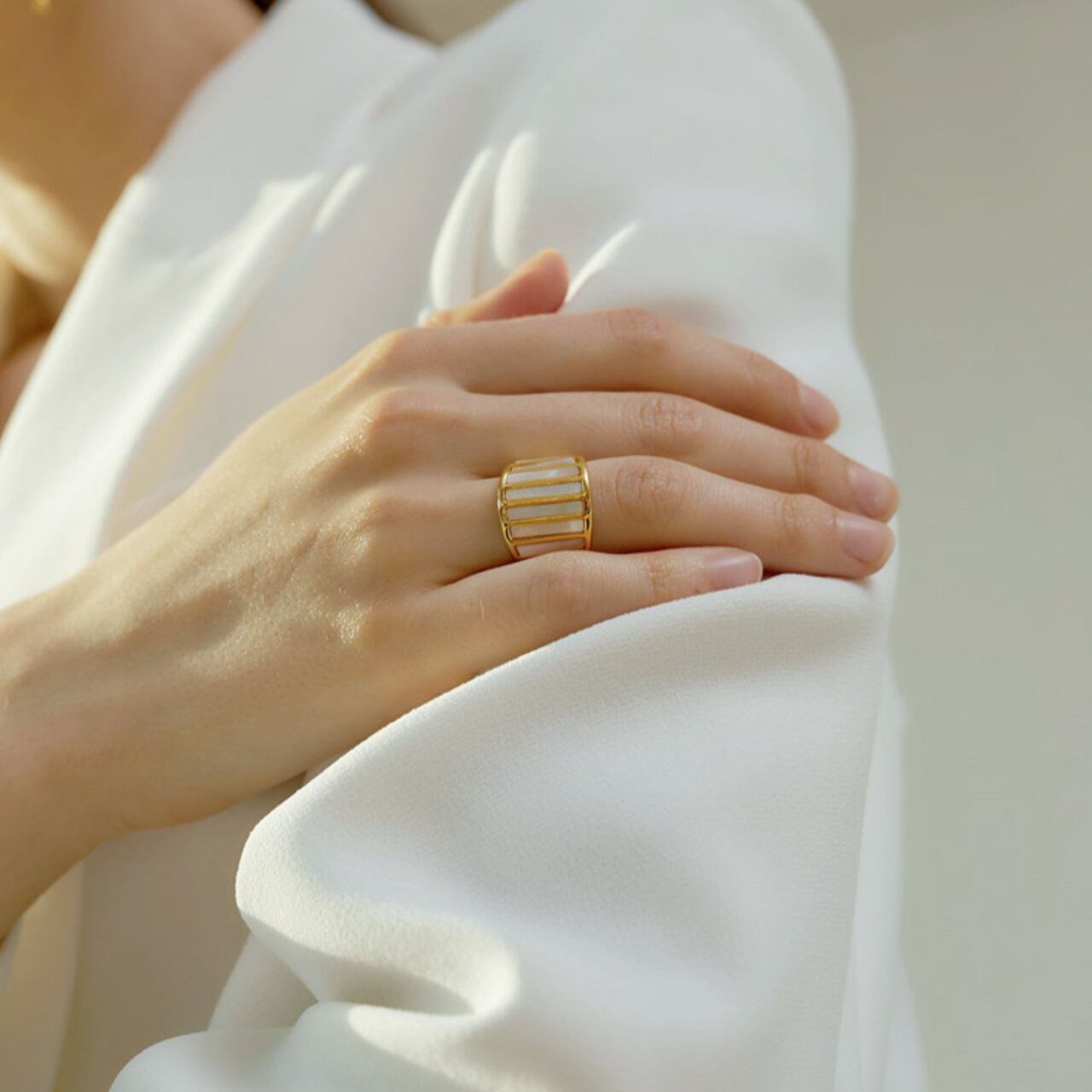 ヴィンテージな雰囲気と上質な素材を兼ね備えた一品です。レトロなデザインがモダンなスタイリングにアクセントを加え、あなたの指先を華やかに飾ります。 【サイズ】 サイズ6:内周:51.8cm 内径:16.5cm サイズ7:内周:54.4cm 内径:17.3cm サイズ8:内周:56.9cm 内径: 18.1cm ※採寸方法により誤差が生じる場合がございます。予めご了承ください。 【カラー】 ゴールド 【素材】 合金/銀メッキ/金メッキ ◼️お届けについて ・こちらの商品は海外より直接発送となる為、 ご入金から10日~4週間前後で発送となります。 ・配送日時の指定は出来ませんので、ご了承ください。 ◼️注意事項 ・タイミングによっては 商品在庫切れにより ご注文をキャンセルさせていただく恐れもございますので、予めご了承ください ませ。 ・こちらは輸入品となります。日本製とは検品基準が異なる為、 新品未使用品でもごくわずかな汚れや傷がある場合もございます。 ・商品の色味は、お手持ちのスマートフォンの画面によって実物と若干異なる場合 がございます。 ・イメージ違いやサイズ交換等、お客さまご都合による交換、返品は対応出来かね ます。 ————————————————— ご購入前にこちらをお読みください https://store.elantokyo.net/about —————————————————