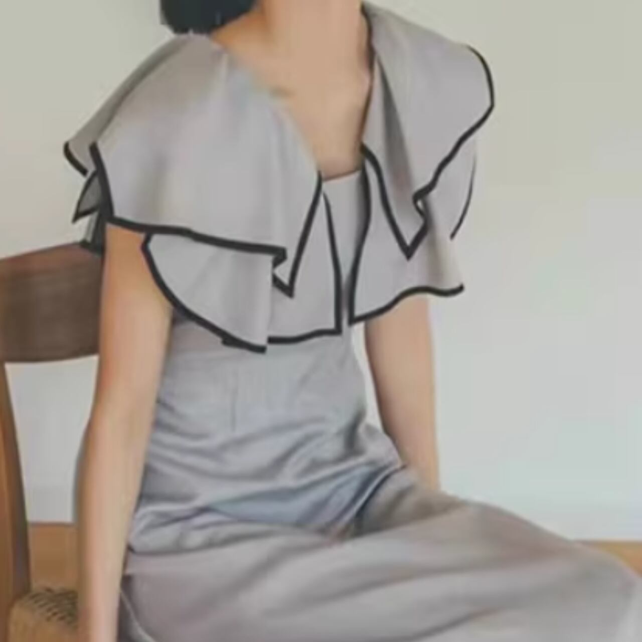 フェミニンで可愛らしい雰囲気漂うフリルワンピース。ボディラインを美しく包み込むシルエットと、フリルディテールが女性らしさを引き立てます。