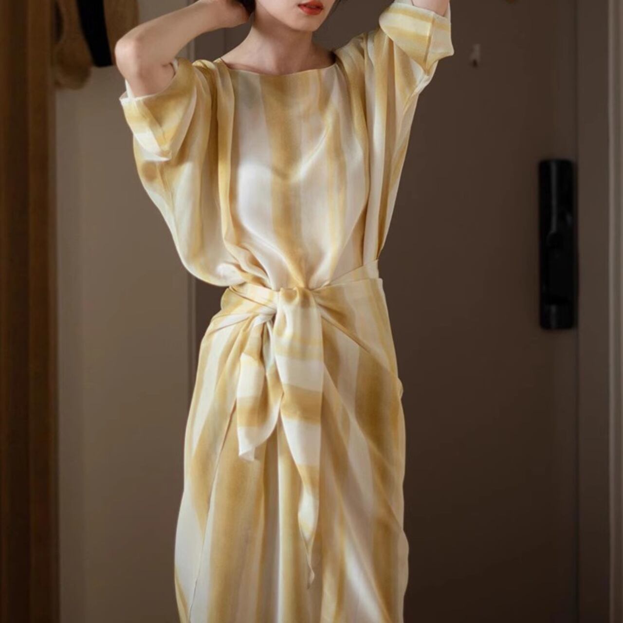 デザイン性抜群のストライプウエストリボンワンピース。ウエストリボンのアクセントが女性らしさを引き立て、スタイルアップ効果も期待できる一着です。ストライプ柄がさりげないおしゃれ感を演出し、どんな場面でも活躍すること間違いなし! 【サイズ】 ※インポート品になりますので、日本と比べてサイズが小さい可能性がございます。 こちらのサイズ表でご確認いただき、ご購入をお願いいたします。 S 肩幅:38cm 胸囲:116cm 腰囲:86cm 袖丈:38cm 着丈:120cm M 肩幅:39cm 胸囲:120cm 腰囲:90cm 袖丈:39cm 着丈:121cm L 肩幅:40cm 胸囲:124cm 腰囲:94cm 袖丈:40cm 着丈:122cm XL 肩幅:41cm 胸囲:128cm 腰囲:98cm 袖丈:41cm 着丈:123cm ※寸法方法により1~3cmほどの誤差が生じる場合がございます。 【カラー】 イエローホワイト ◼️お届けについて ・こちらの商品は海外より直接発送となる為、 ご入金から10日~4週間前後で発送となります。 ・配送日時の指定は出来ませんので、ご了承ください。 ◼️注意事項 ・タイミングによっては 商品在庫切れにより ご注文をキャンセルさせていただく恐れもございますので、予めご了承ください ませ。 ・こちらは輸入品となります。日本製とは検品基準が異なる為、 新品未使用品でもごくわずかな汚れや傷がある場合もございます。 ・商品の色味は、お手持ちのスマートフォンの画面によって実物と若干異なる場合 がございます。 ・イメージ違いやサイズ交換等、お客さまご都合による交換、返品は対応出来かね ます。 ————————————————— ご購入前にこちらをお読みください https://store.elantokyo.net/about —————————————————