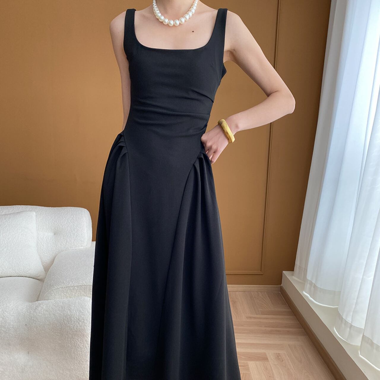 ボリューム感が魅力のノースリーブワンピース。シンプルなデザインながら、スカートのボリュームがトレンド感を演出してくれます。ふんわりと広がる裾が女性らしさを引き立て、着るだけでおしゃれ度がアップします。