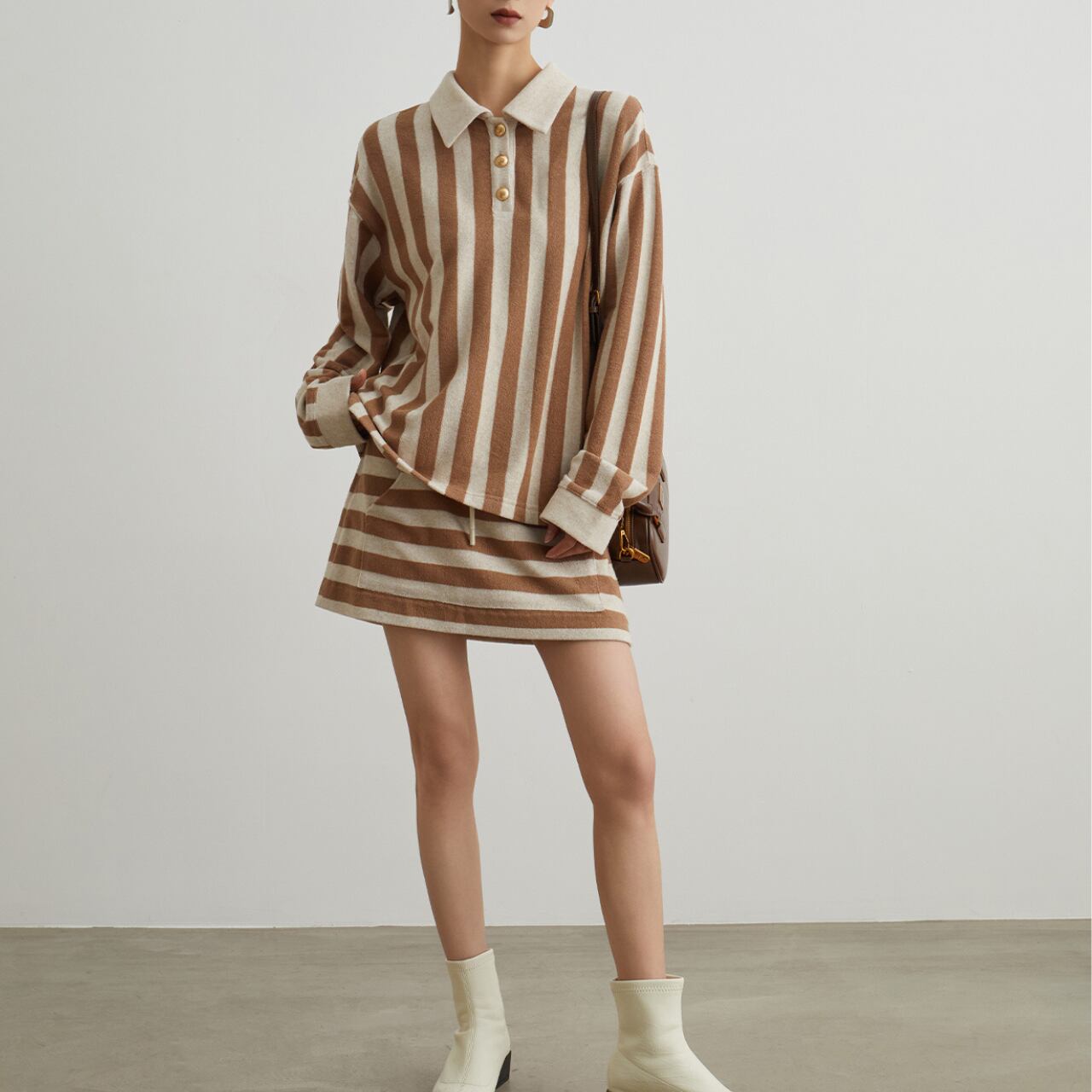 おしゃれで爽やかな印象を与える襟付きストライプトップスです!太めなストライプがアクセントとなり、シンプルながらも洗練されたコーディネートに仕上げることができます。カジュアルなデイリースタイルから、オフィスやお出かけにもぴったりな一着です。 【サイズ】 ※インポート品になりますので、日本と比べてサイズが小さい可能性がございます。 こちらのサイズ表でご確認いただき、ご購入をお願いいたします。 S 肩幅:30cm 胸囲:98cm 袖丈:44cm 着丈:64cm M 肩幅:31cm 胸囲:102cm 袖丈:45cm 着丈:65cm L 肩幅:32cm 胸囲:106cm 袖丈:46cm 着丈:66cm XL 肩幅:33cm 胸囲:110cm 袖丈:47cm 着丈:67cm ※寸法方法により1~3cmほどの誤差が生じる場合がございます。 【カラー】 ブラウン 【生地】 ポリエステル80% ◼️お届けについて ・こちらの商品は海外より直接発送となる為、 ご入金から10日~4週間前後で発送となります。 ・配送日時の指定は出来ませんので、ご了承ください。 ◼️注意事項 ・タイミングによっては 商品在庫切れにより ご注文をキャンセルさせていただく恐れもございますので、予めご了承ください ませ。 ・こちらは輸入品となります。日本製とは検品基準が異なる為、 新品未使用品でもごくわずかな汚れや傷がある場合もございます。 ・商品の色味は、お手持ちのスマートフォンの画面によって実物と若干異なる場合 がございます。 ・イメージ違いやサイズ交換等、お客さまご都合による交換、返品は対応出来かね ます。 ————————————————— ご購入前にこちらをお読みください https://store.elantokyo.net/about —————————————————
